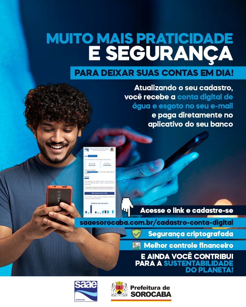 Além dos benefícios relacionados à praticidade e à sustentabilidade, o cadastramento na fatura digital também contribui para a manutenção e qualificação do cadastro do munícipe junto ao Saae-Sorocaba, facilitando futuras solicitações e atendimentos e contribuindo para que os processos ocorram de forma mais ágil e eficiente.