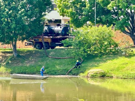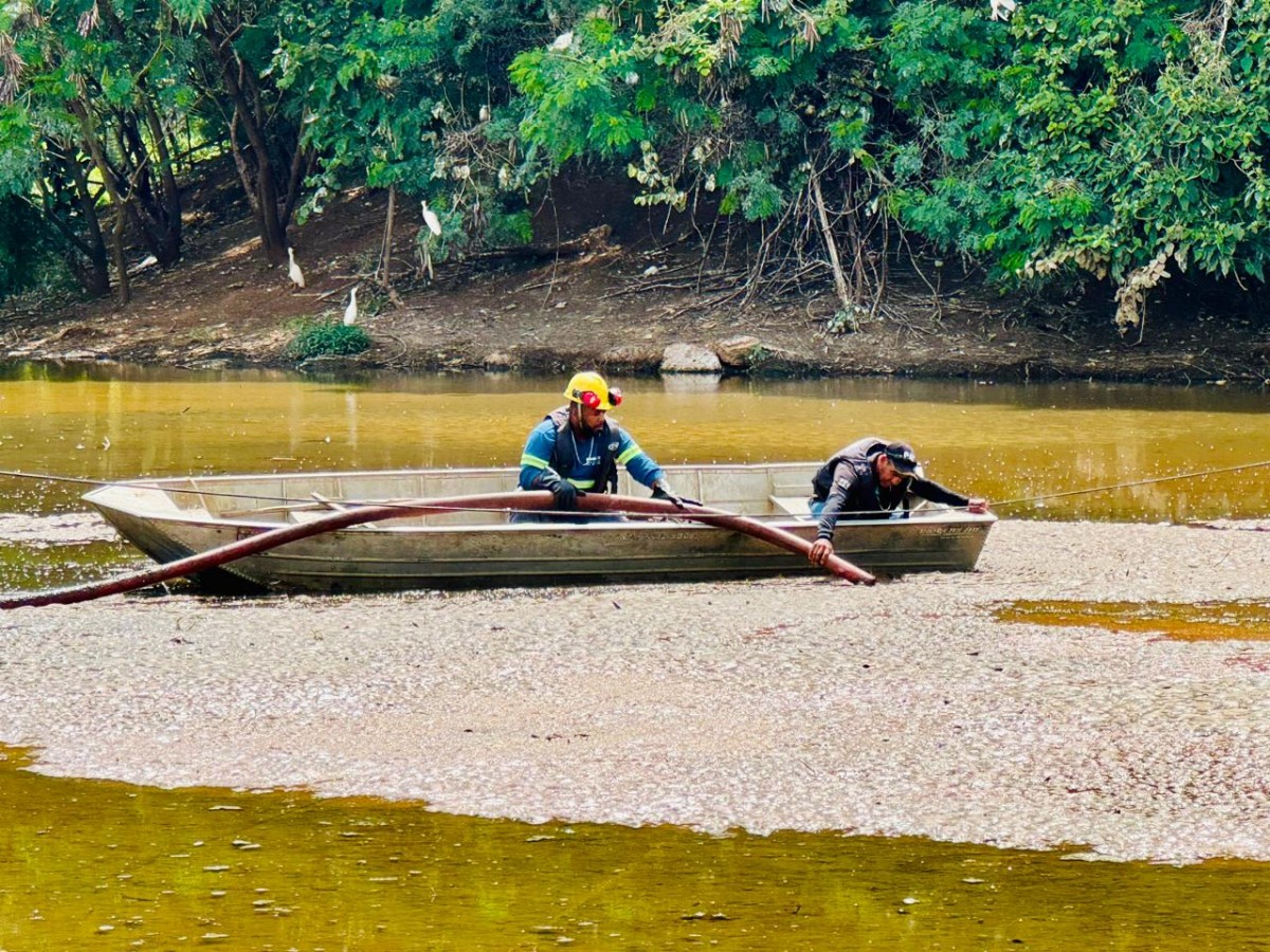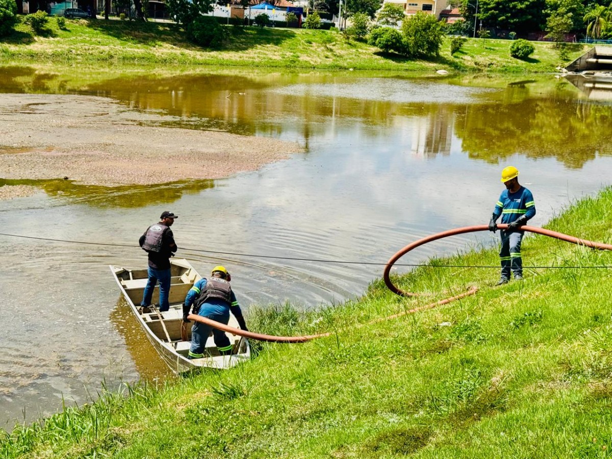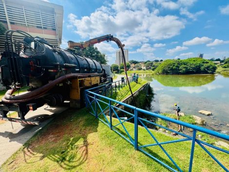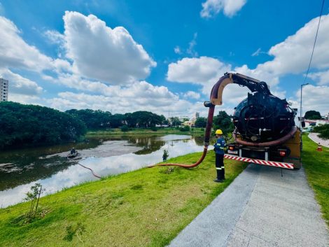 O serviço foi executado por equipes de servidores da autarquia e empresa terceirizada. Na ação, foram mobilizadas três equipes, três caminhões para a retirada dos resíduos e uma embarcação de apoio para o alcance dos mangotes de sucção.