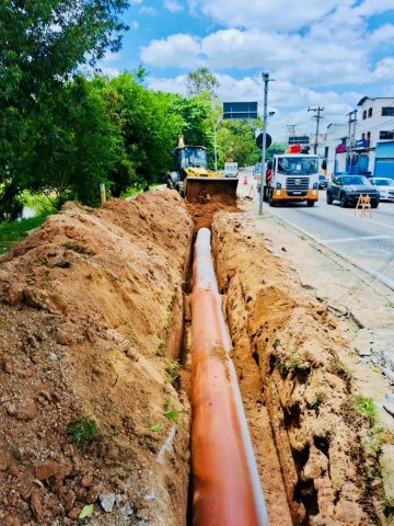Foram implantados cerca de 300 metros de tubulação, de PVC de 500 milímetros de diâmetro, no trecho entre a Estação Elevatória de Esgoto (EEE – 05), situada na confluência da Avenida Juvenal de Campos com a Rua Bernardo Ferraz de Almeida, até a ponte José Sanches, nas proximidades da Praça Dom Tadeu Strunck.