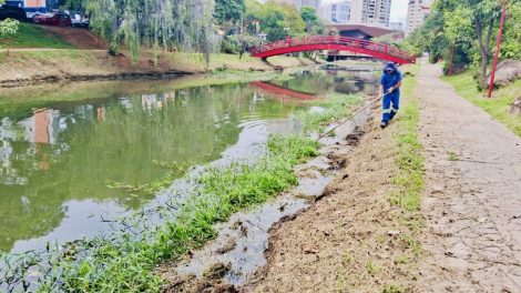 O Serviço Autônomo de Água e Esgoto (Saae) de Sorocaba concluiu, nesta sexta-feira (14), a limpeza e retirada de mato da bacia de contenção no Parque Kasato Maru, Zona Sul da cidade. A intervenção ocorre periodicamente para auxiliar na manutenção do local e evitar a proliferação das plantas que podem prejudicar a vida aquática, além de retomar o seu visual de origem.