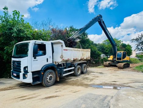 O serviço conta com a utilização de escavadeira hidráulica e consiste na retirada dos sedimentos que ficam depositados no leito do córrego. O material, contendo resíduos de todo tipo, é removido e transportado em caminhões para aterro apropriado. Também ocorre a remoção de mato e lixo que é carreado pela correnteza, em dias de chuva.