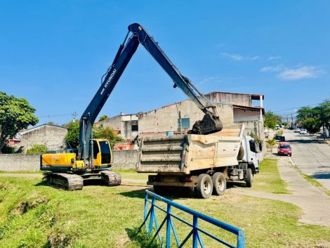 O serviço, que é executado com a utilização de escavadeira hidráulica e consiste na retirada dos sedimentos que ficam depositados no leito do córrego. O material, contendo resíduos de todo tipo, é removido e transportado em caminhões para aterro apropriado. Também ocorre a remoção de mato e lixo que é carreado pela correnteza, em dias de chuva.
