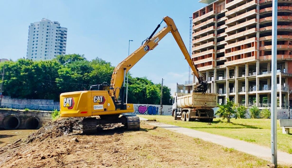 As intervenções tiveram início na semana passada e a expectativa é que sejam concluídas até o fim de maio. Os serviços, executados com escavadeira hidráulica, consistem na retirada do sedimento depositado no fundo do córrego. O material é transportado por caminhões e levado para aterro apropriado. Também é feita a remoção de mato e todo tipo de resíduo que carreado em dias de chuva.