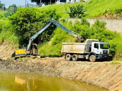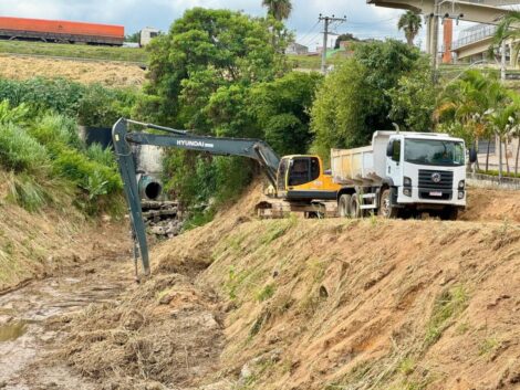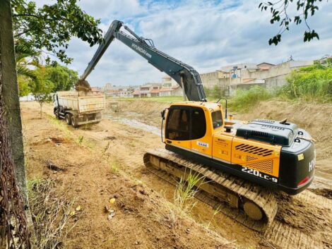 Os serviços, que foram executados com a utilização de escavadeira hidráulica, consistiram na retirada dos resíduos que ficaram depositados no fundo dos leitos. Todo material foi transportado por caminhões e depositado em aterro apropriado. Também foi feita a remoção de mato e demais resíduos que são carreados em dias de chuva.