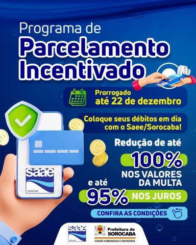 Saae-Sorocaba prorroga prazo para adesão ao Programa de Parcelamento Incentivado (PPI) até 22 de dezembro