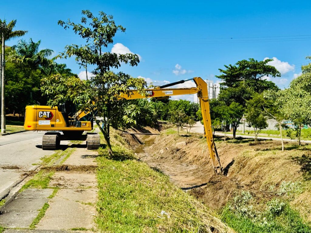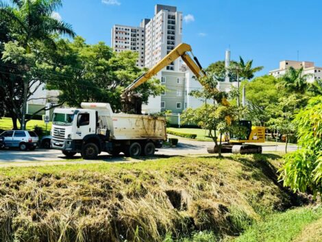 A intervenção ocorre periodicamente, em trechos ao longo dos 1.500 metros de extensão, com o objetivo de manter o córrego em condições de funcionamento e preparado para suportar os períodos de chuvas.