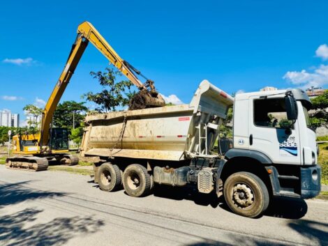 O serviço conta com a utilização de escavadeira hidráulica e consiste na retirada dos sedimentos que ficam depositados no leito do córrego. O material, contendo resíduos de todo tipo, é removido e transportado em caminhões para aterro apropriado. Também ocorre a remoção de mato e lixo que é carreado pela correnteza, em dias de chuva.
