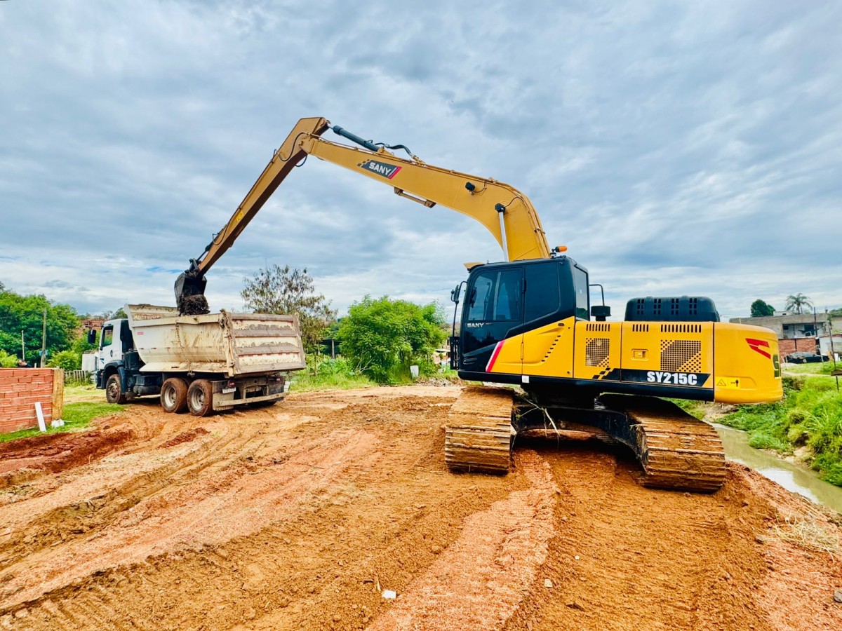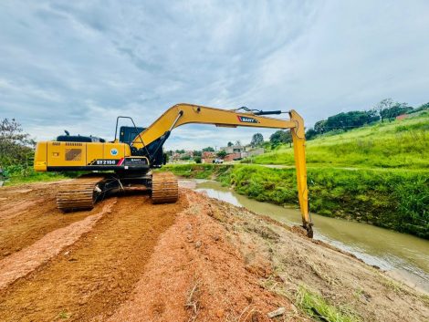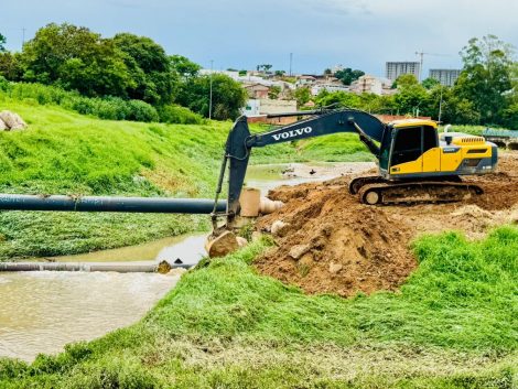 A intervenção ocorre periodicamente, ao longo de aproximadamente 1.500 metros de extensão, com o objetivo de manter o córrego em condições de funcionamento e preparado para suportar os períodos de chuvas.