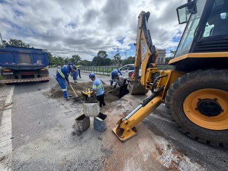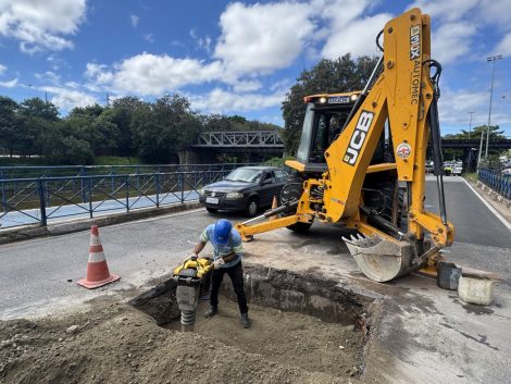 O Saae/Sorocaba informa que a intervenção é necessária, tendo em vista um afundamento de solo entre a base da ponte e o pavimento da via.