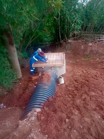 O projeto de drenagem incluiu a construção de mais três bocas de lobo de grande vazão e três caixas de passagens. No local, também foram interligadas a rede existente com as novas unidades de água pluvial, com a obra em fase final de aterramento da saída para córrego nas imediações.
